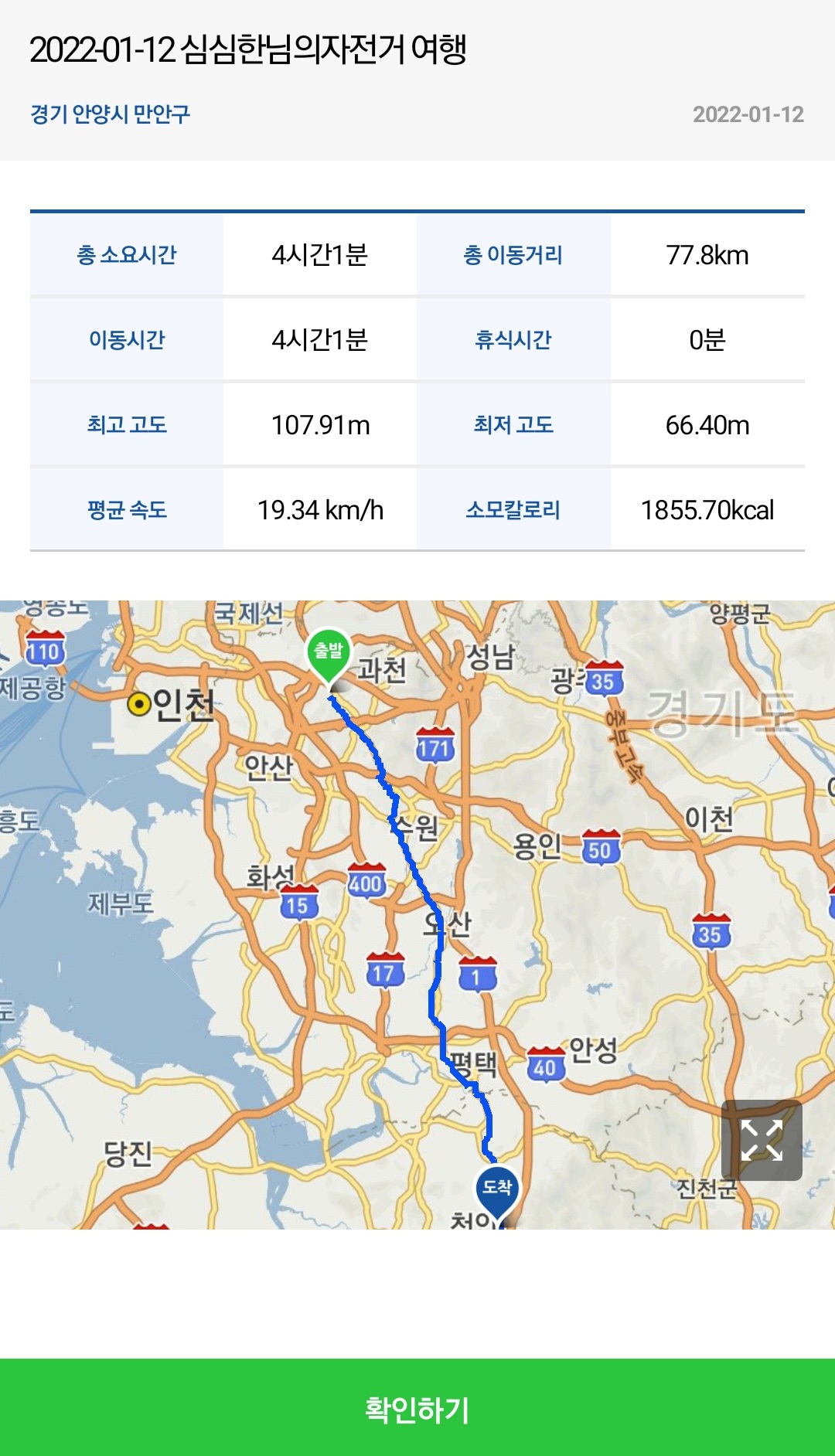 ▶ 버스이용거리 : 77.8km (두루누비 어플 기록)