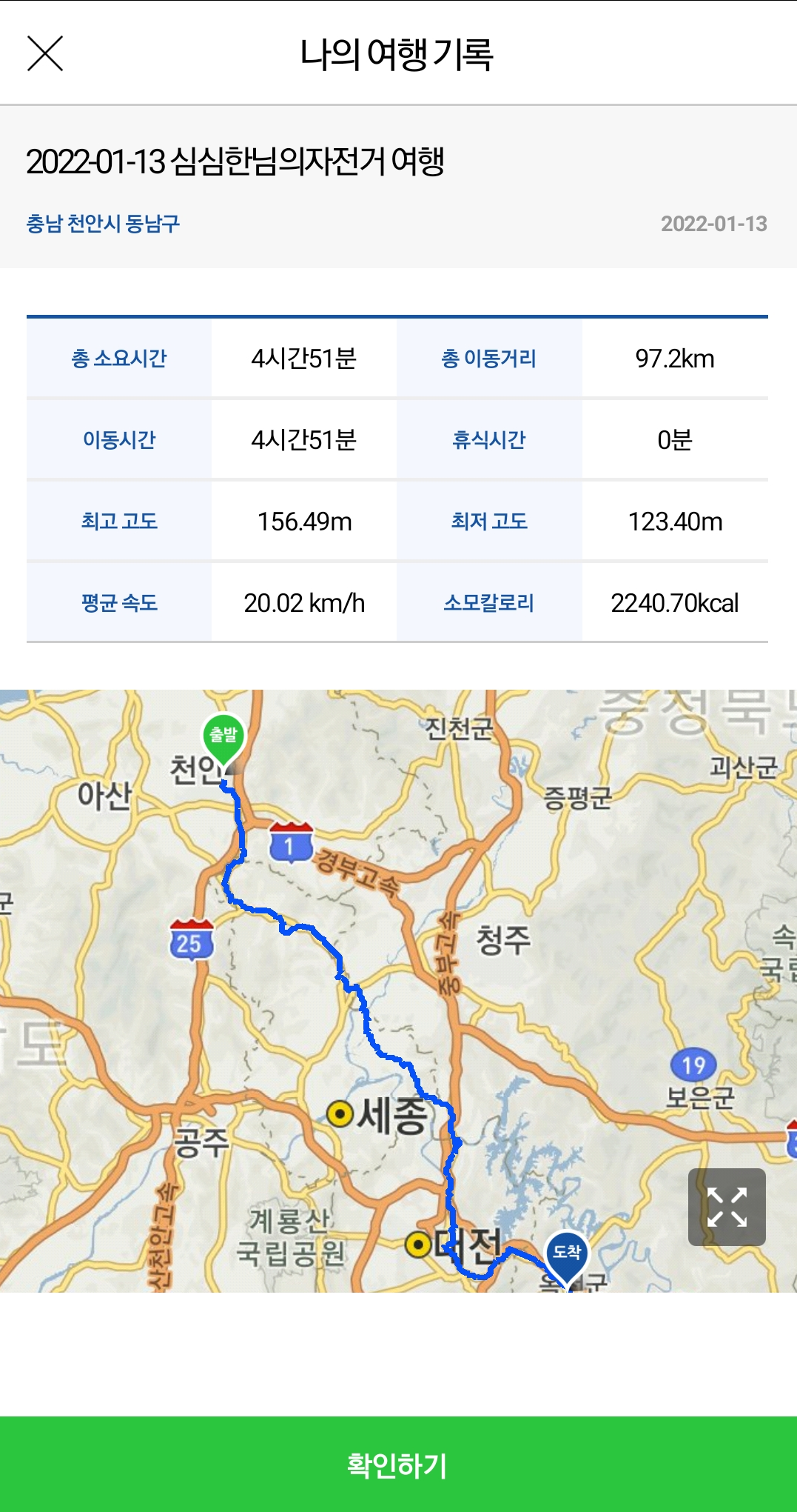 ▶ 경부선 코스 위주로 일반버스 이용. 두루누비 어플 자전거 타기로 경로 기록.