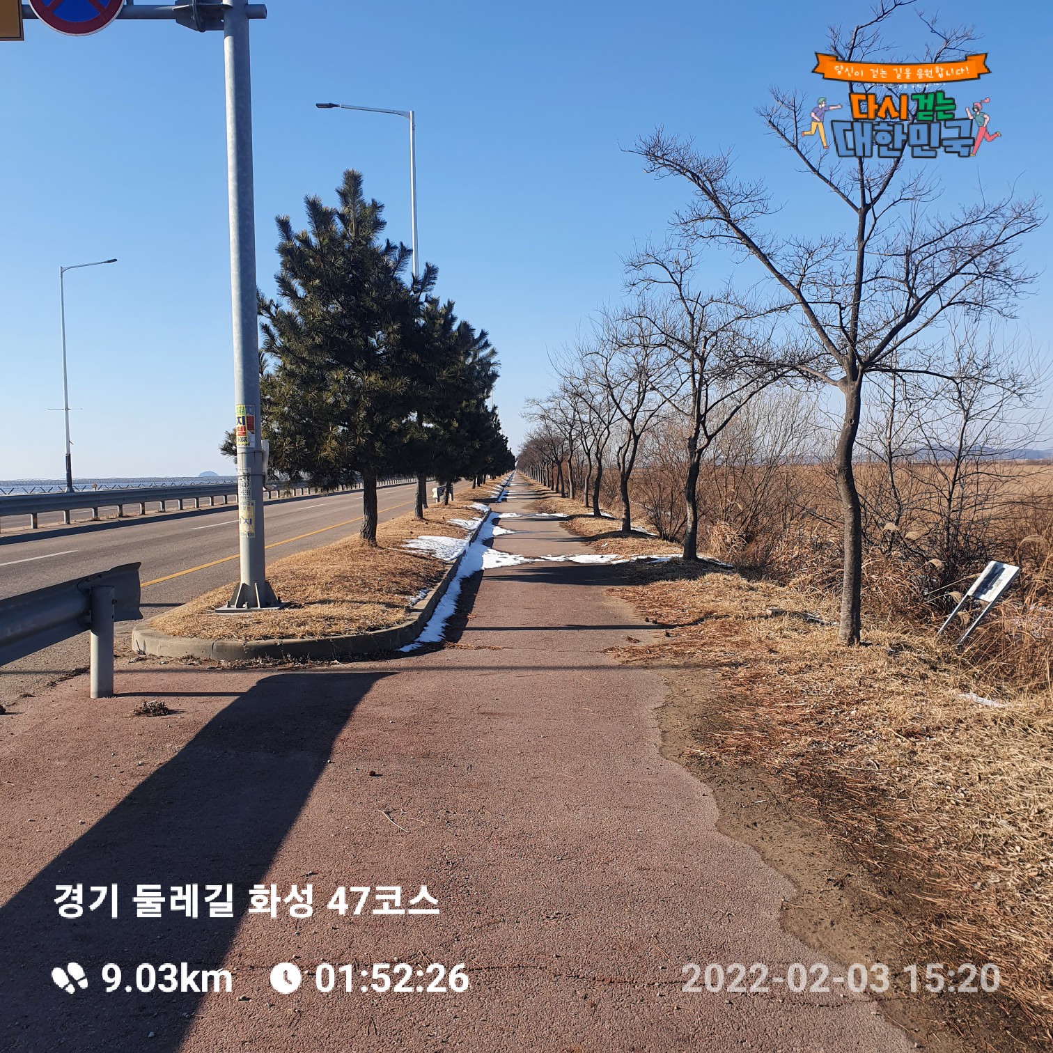 경기둘레길도 변경 되어야 함. 기아자동차정문 부터 화성드림파크까지 제대로 된 인도가 없슴.