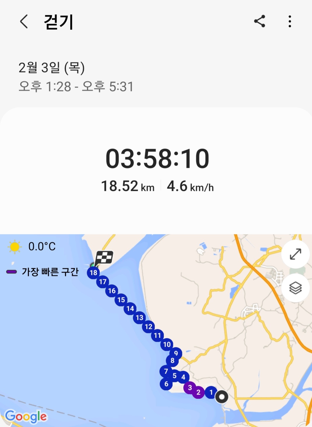 ▶ 실제 총거리 : 18.52km (갤럭시 워치4 기록)