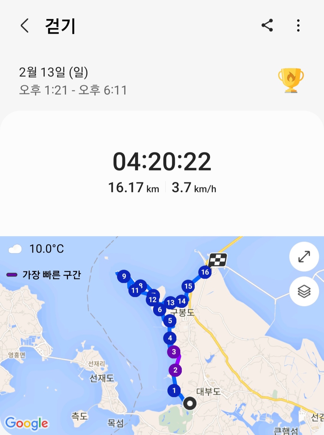 ▶ 실제 총거리 : 16.17km (갤럭시 워치4 기록)