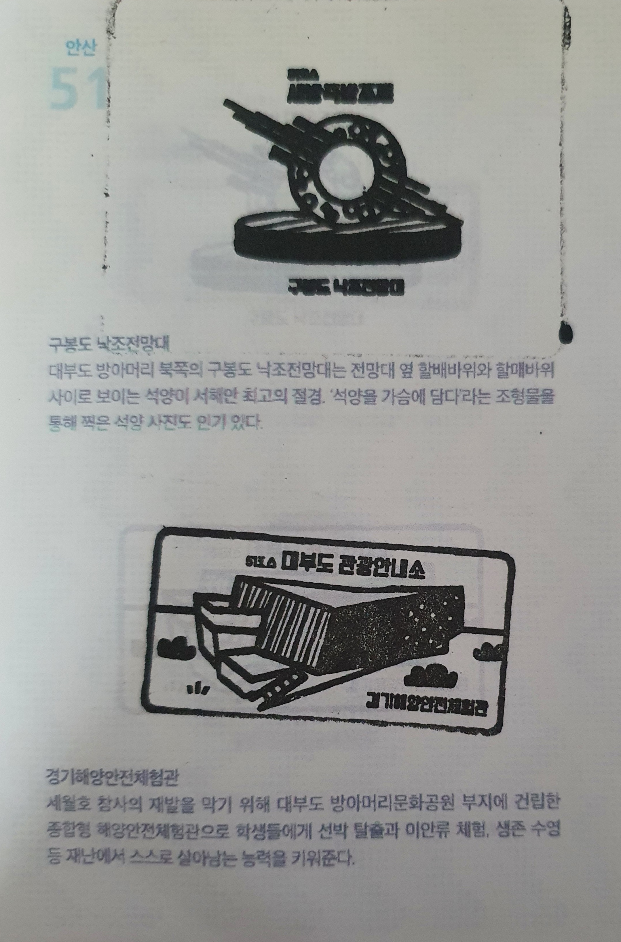 ▶ 주요 코스 : 새방죽방조제 ~ 구봉도 ~대부도방아머리먹거리타운 ~ 대부도 관광안내소