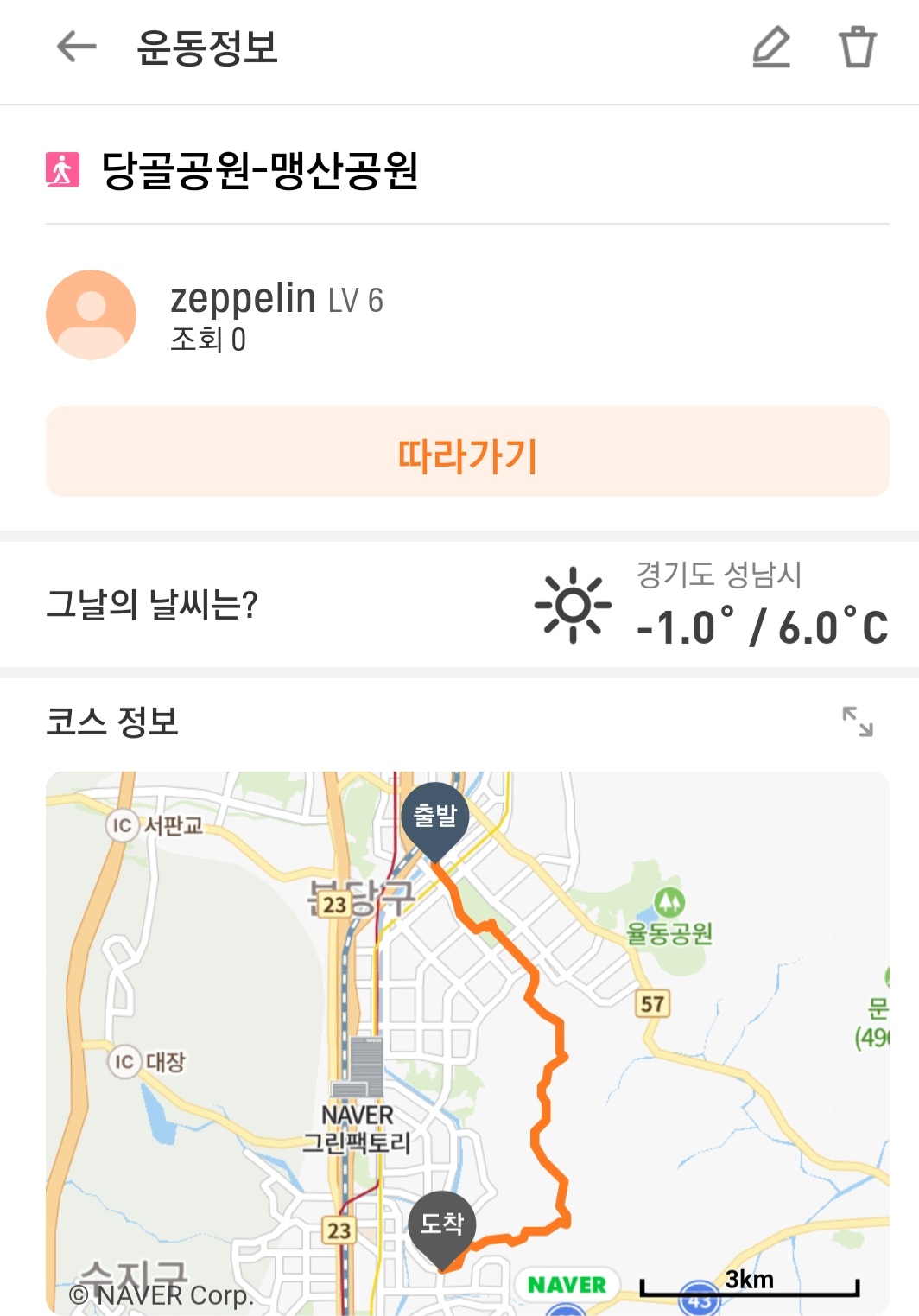 ▶ 주요 코스 : 분당구청 ~ 수내동고가(중앙공원) ~ 당골공원 ~ 불곡산 ~ 불곡산출구(무지개마을)