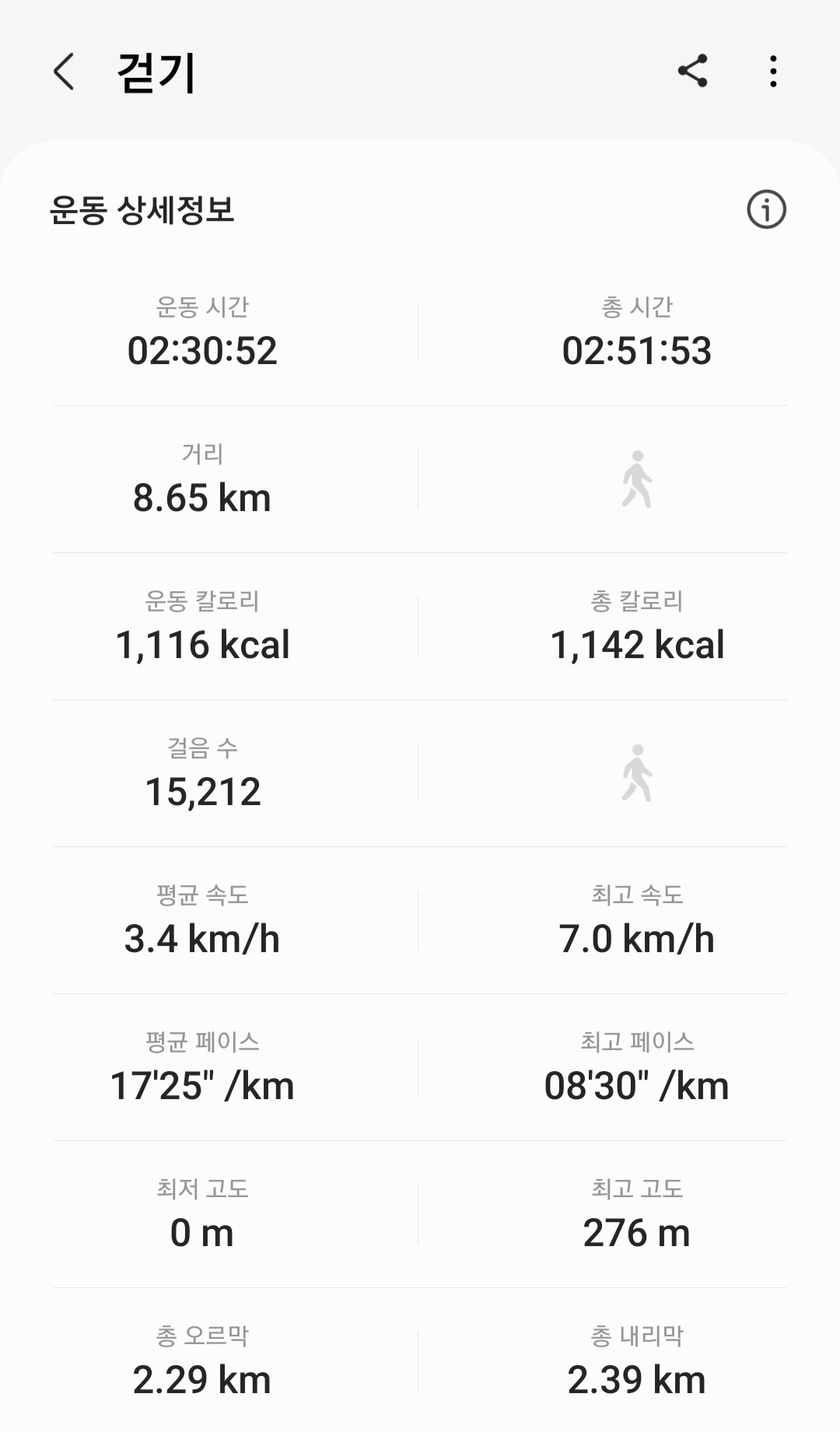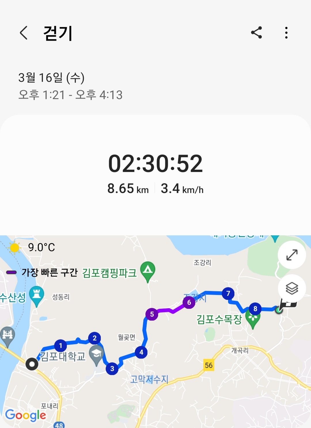 ▶ 실제 총거리 : 8.65km (갤럭시 워치4 기록)