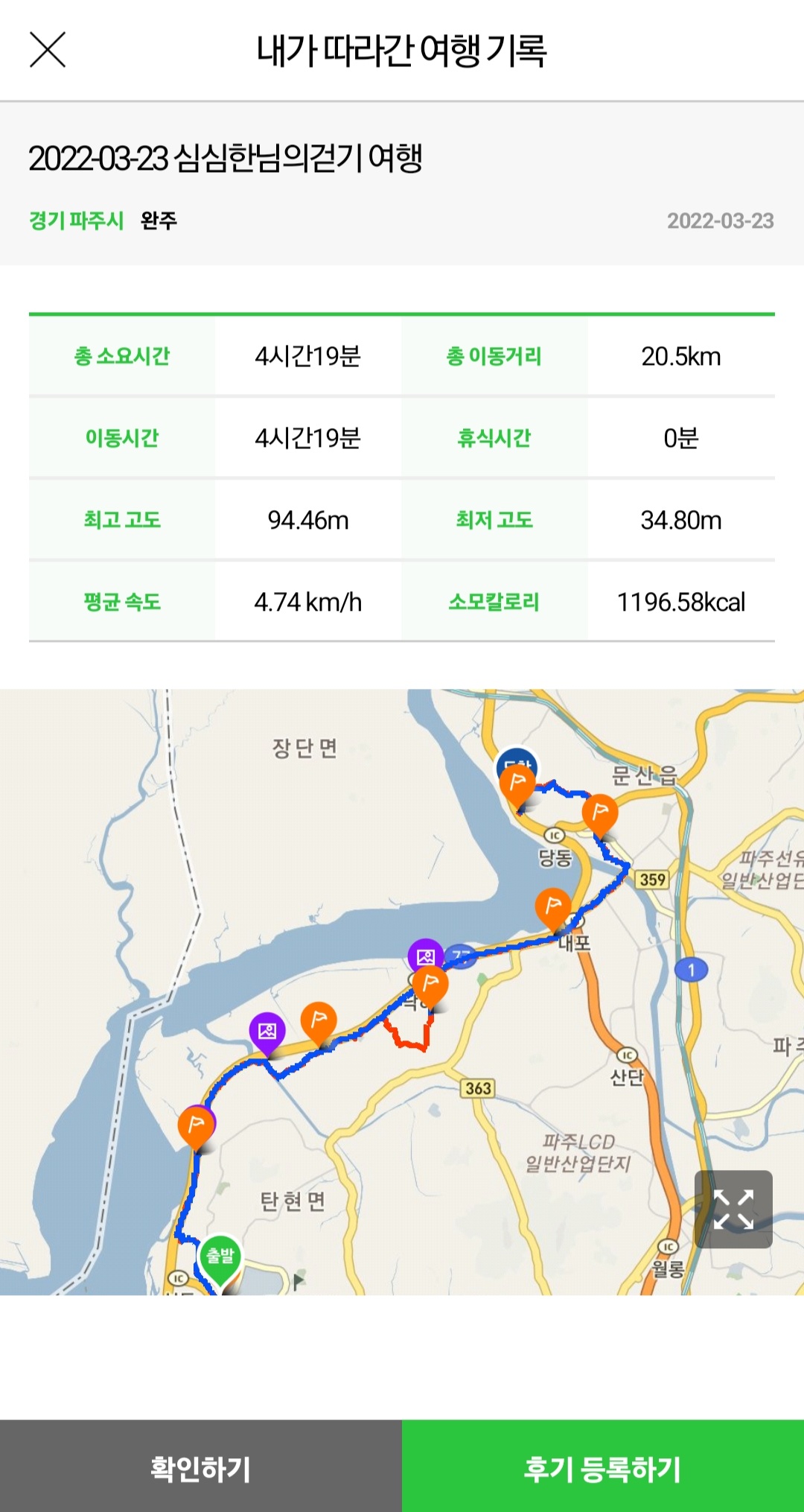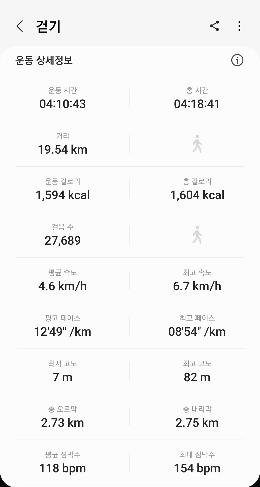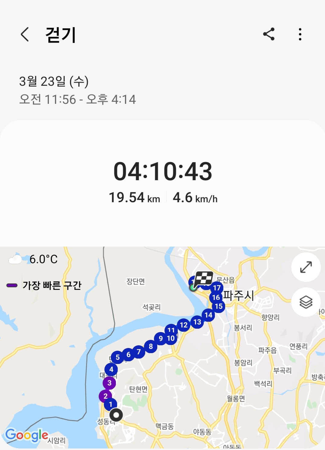 ▶ 실제 총거리 : 19.54km (갤럭시 워치4 기록)