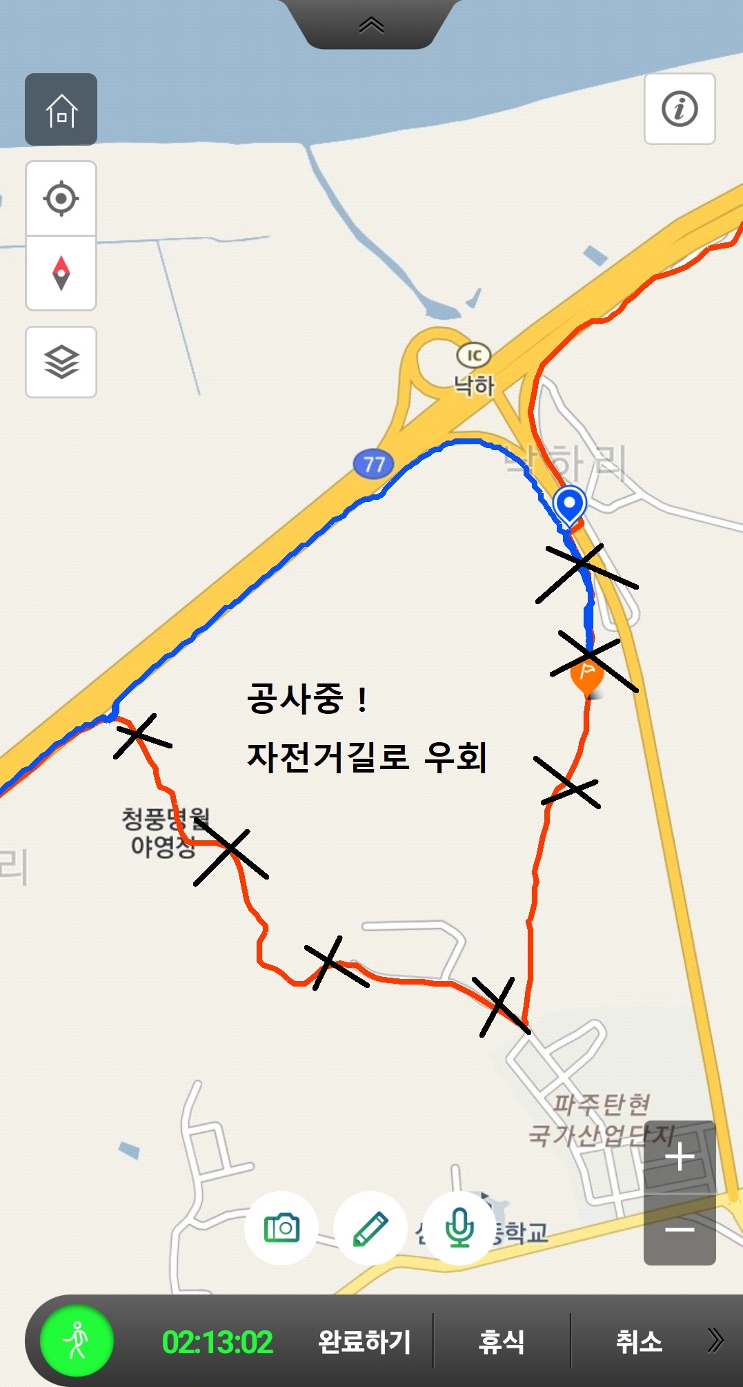 ▶ 청풍명월야영장 입구 도로공사중으로 평화누리자전길로 우회 해야함.