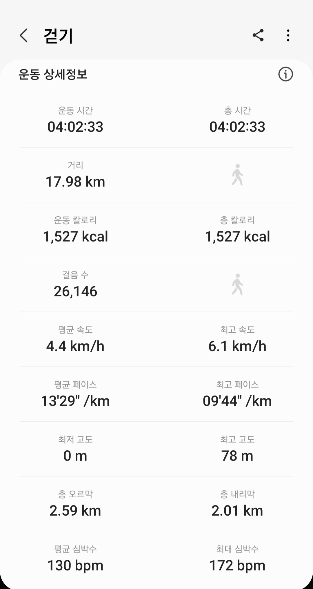 ▶ 실제 총거리 : 17.98km (갤럭시 워치4 기록)