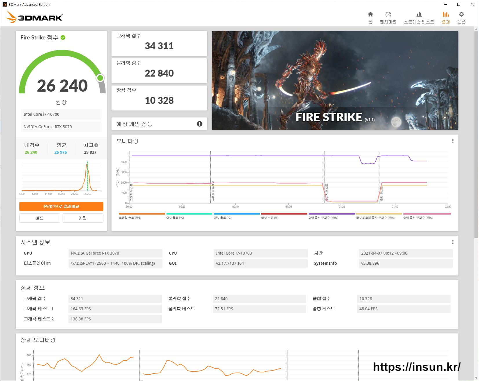 인텔 10세대 i7-10700 을 전력제한 해제 전후 3DMARK 점수는 어떤가 측정해 봤습니다.