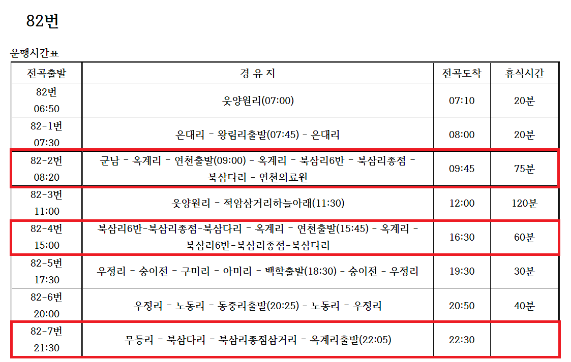 ▶ 전곡재래시장 53번, 82번 버스 시간표 첨부. 버스 탈때 세븐일레븐 좌-우측 버스 확인.