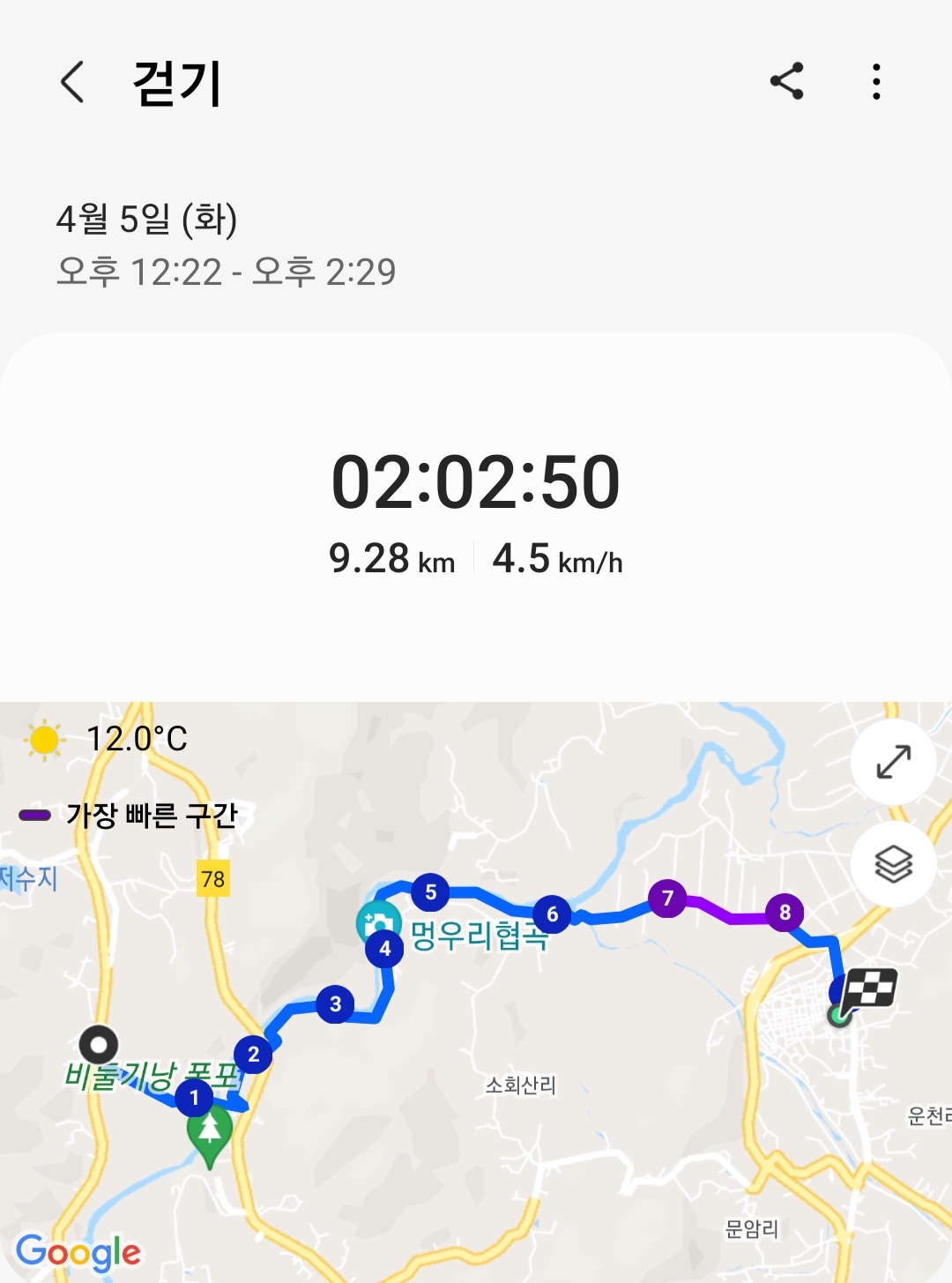 ▶ 실제 총거리 : 9.28km (갤럭시 워치4 기록)