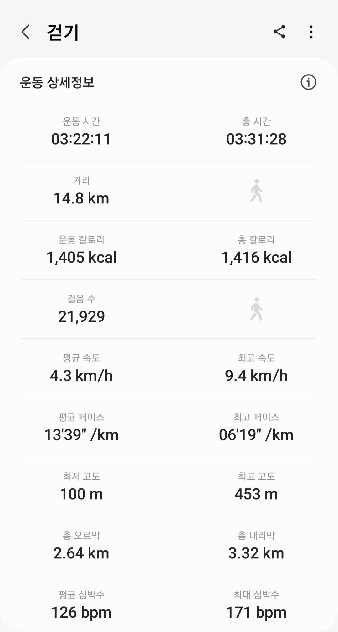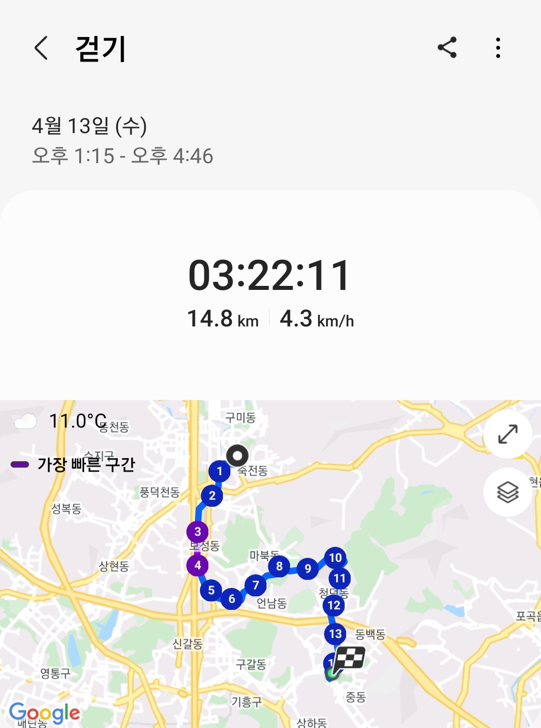 ▶ 실제 총거리 : 14.8km (갤럭시 워치4 기록)
